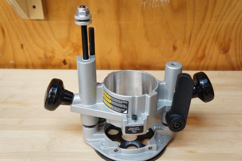 The one thing I did notice from this to my older version is the grip. Mine has more of a rounded handle, while this has more of an oval handle which feels much better. This router features an 11 amp motor with a peak of 1-3/4″ HP and has an rpm of 27,500. On the fixed base, inserting and locking the router is a snap. There is a cam lever to adjust and lock it into place. On the plunge base, this is much harder. The user has to use a small Allen wrench to tighten the router into the base. To get the router out, you have to take the screw all the way out. I find this method a little cumbersome and could have a better design, but I will touch on that in a bit.