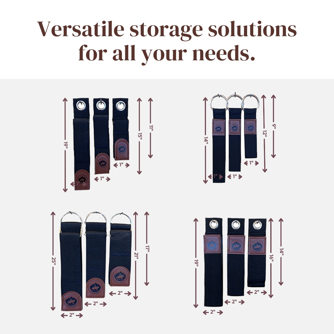 Lariat Straps will become a go-to storage solution in your home the second they make it through the door. They are perfect for use in the house, garage, shed, barn, storage closet, under the sink, or anywhere.