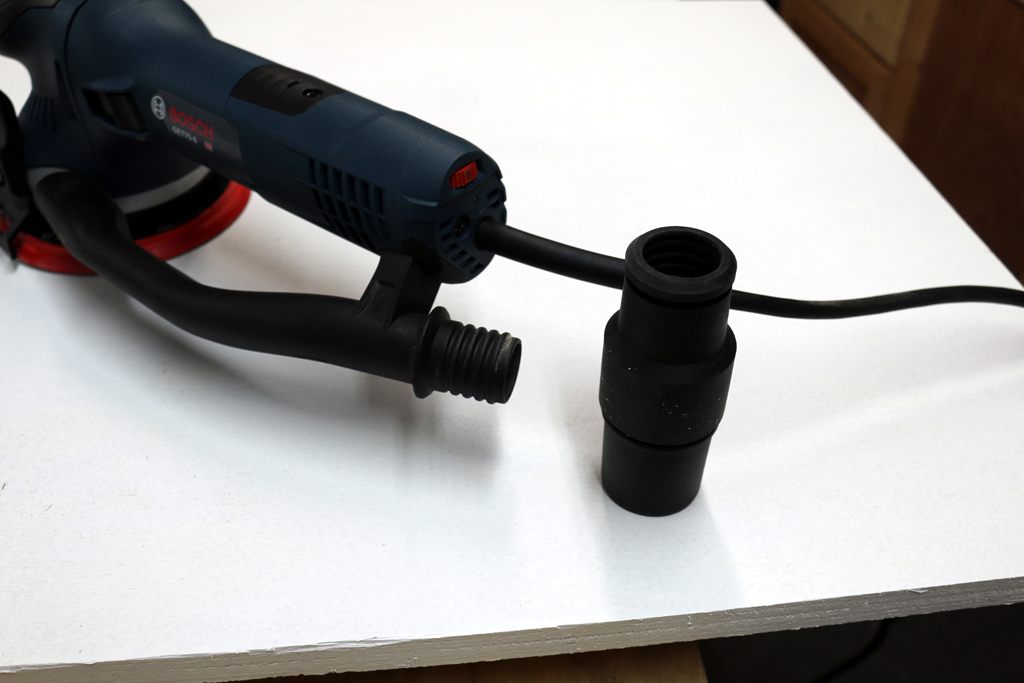 A dust port adaptor is supplied so you can hook this sander up to 35MM, 1-1/4”, and 1-1/2” vacuum hoses.
