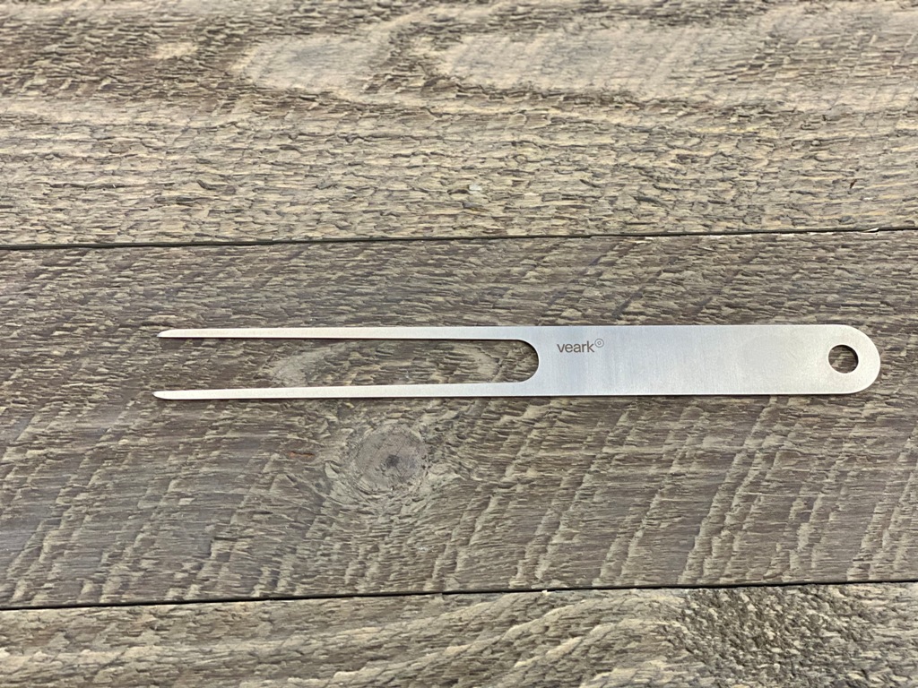 What would an incredible knife be without a cool accessory to go along with it? This is the F13 Carving Fork. The fork is 2.25mm thick and 245mm long. The fork is laser cut from stainless steel and sandblasted for the matte finish. Then to complete the fork, they sharpen it by hand. Just another example of why Veark is a top pick in the knife category.