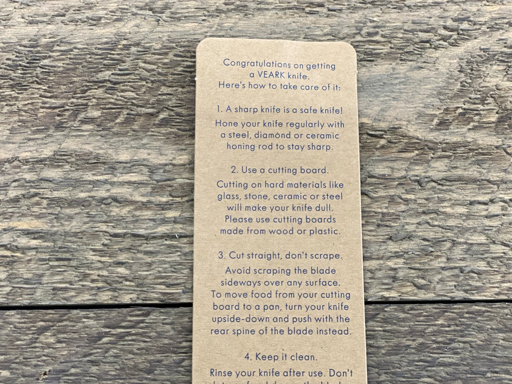 Not sure how to take care of the knife? No worries, Veark included a handling guide about the knife you can keep for reference.