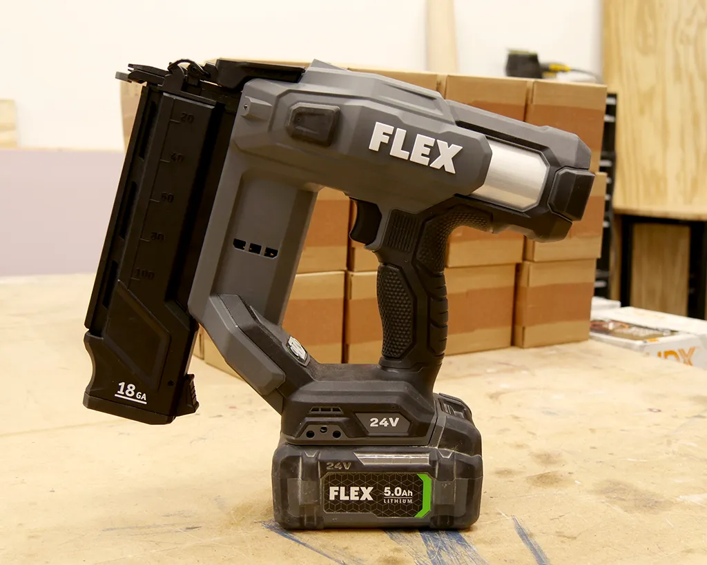 The FLEX 24V 18GA Brad Nailer is the latest power tool to benefit from the FLEX 24V platform.