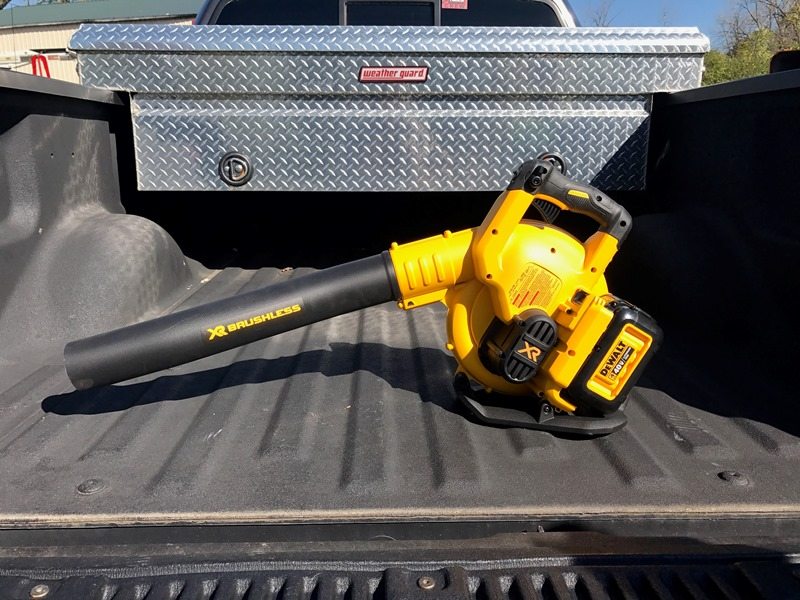 Best Cordless BlowerDewalt is a name you can trust.  They have been around for a long time and make professional, quality products.  Don’t let the fact that this is only a 40V fool you.  This has plenty of power and with the highest amp hour battery (4Ah), it has great run time along with great power.  This is the only blower we tested that is designed for the professionals.