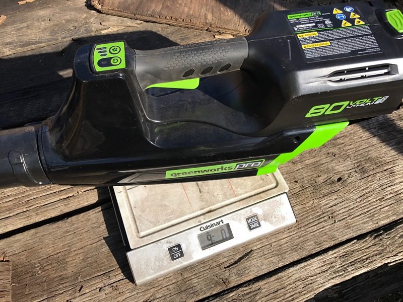 This blower has some serious CFM and MPH to it.  While the power is great, it comes at a weight.  This was the heaviest blower we tested.  Troy Built makes some of the best professional OPE tools and their cordless line is awesome.  For me, I still have a hard time getting over the weight of this unit.