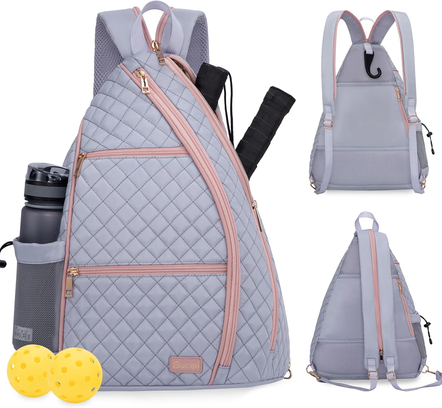 Sucipi Pickleball Bag for Women Pickleball Backpack Quilted Crossbody Sling Bag