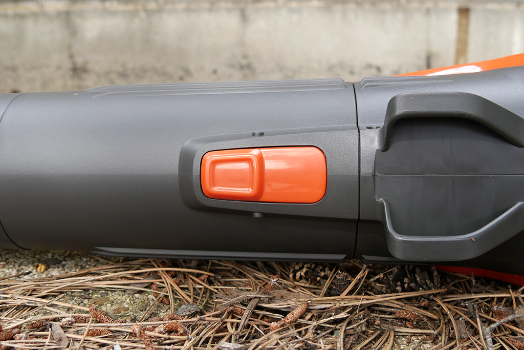 The blower tube consists of three parts: an upper tube, a lower tube, and your attachment of choice. We have the speed nozzle attachment in the photos above. The upper tube connects to the blower with a push lock, while the other two have a grooved lock to hold it in place. The locks securely hold everything together well.